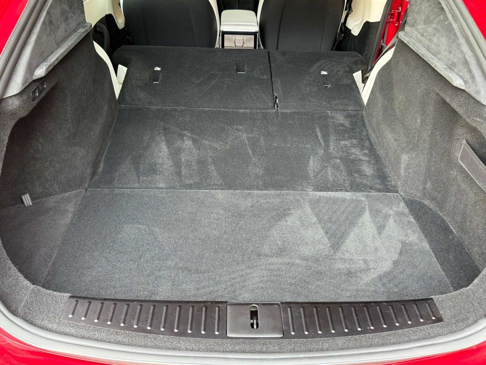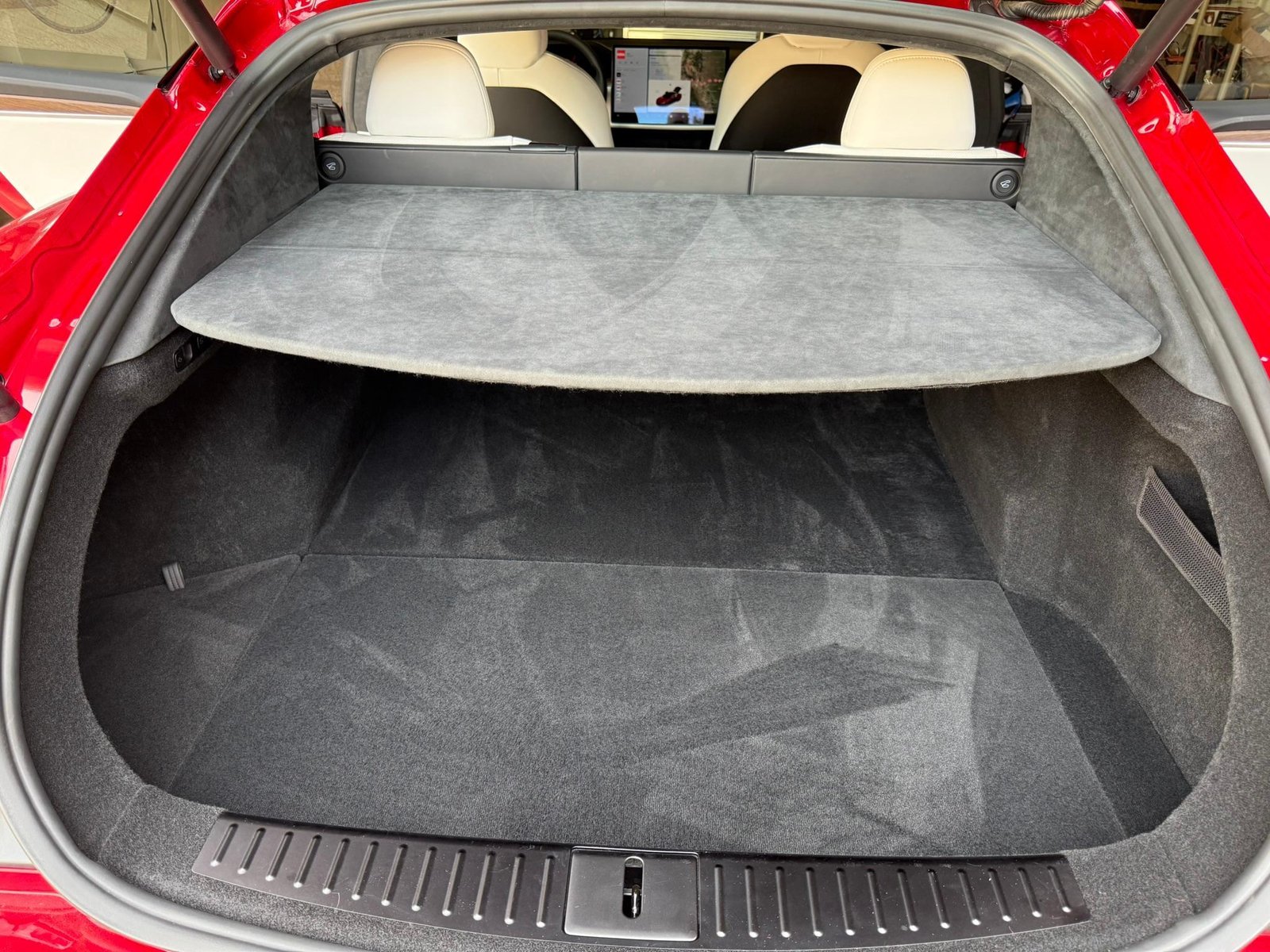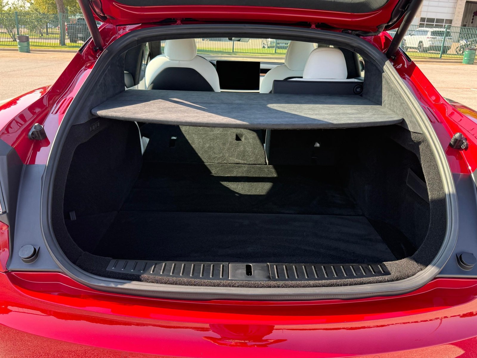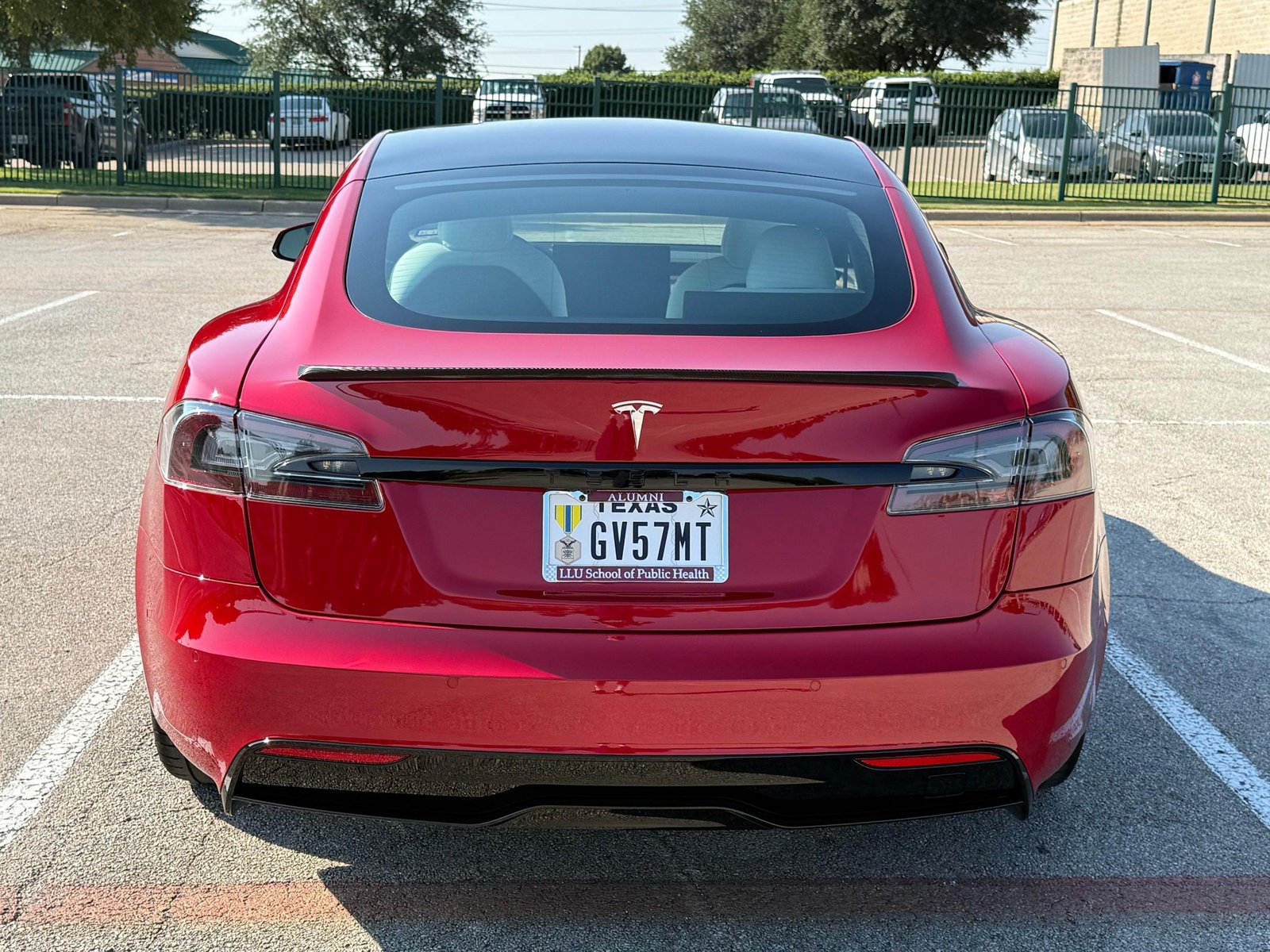 THIS… is a 2022 Tesla Model S Long Range, finished in red with a white and black interior. According to the window sticker provided in the gallery, notable factory equipment includes 19-inch wheels, a panoramic glass roof, heated and ventilated front seats, heated rear seats, and Full Self-Driving Capability. Notable modifications reported by the seller are limited to a circular Tesla steering wheel.